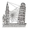 An orb web fixed up between church and the tower in Pisa.