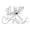 Trap door Liphistius. The fishing lines extend from the mouth of the burrow (Berlin area) to West and East, and North and South, to Barcelona, Madrid, Paris, London, as well as to Lenigrad, Siedlce, Sofia, Beograd.