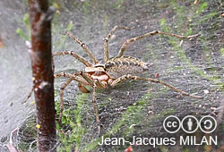 Since 2000 a group of experts from Germany, Austria and Switzerland have chosen a spider species for a year to be the focus on interest. After the water spider (2001) came the wasp spider (2002), the nursery web spider (2003), the green huntsman spider (2004) and the zebra spider (2005). While the project began in the German-speaking countries, Belgian and Dutch colleagues joined in 2005. For 2006 a proper European project was organised for the first time. The project should show the fascinating side of these very useful animals.