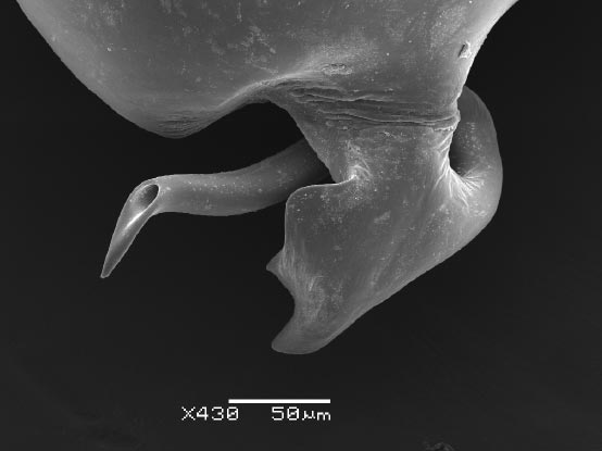 Kopulační orgán samce pavouka šestiočky sadistické připomíná hrot injekční jehly (obr. 1).